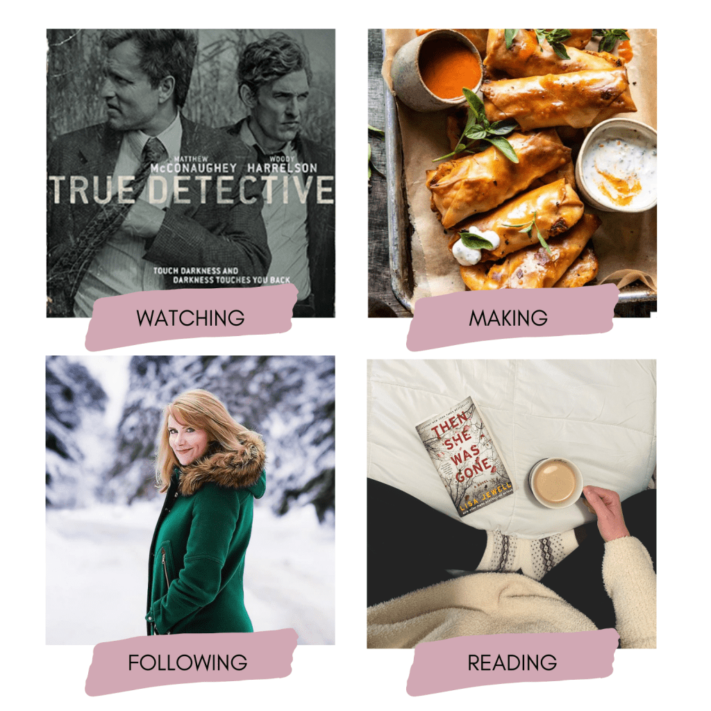 It’s always more fun when my husband and I have a series we both can get into and True Detective has been the most recent show we’ve watched together. We’re finishing up season 3 tonight, the last one and personally my favorite of them all. Be ready to pay attention because to me it felt like between all the people and the details, it was sometimes hard to keep track of everyone and everything. But if you’re into crime shows and looking for something to pass a little bit of time some week (each season is 8 episodes), I’d recommend it if you have HBO.