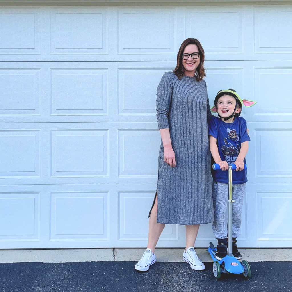 The midi length dress is my new favorite – short enough to not have to worry about tripping over it, long enough to not require being careful about how you sit. It’s my go to option on those days that I want to feel like I’m still in my pajamas but can’t look like it because I have to show my face in virtual meetings. That dress is sadly pretty much out of stock but this one is a really great short sleeve option for late spring and through the summer!