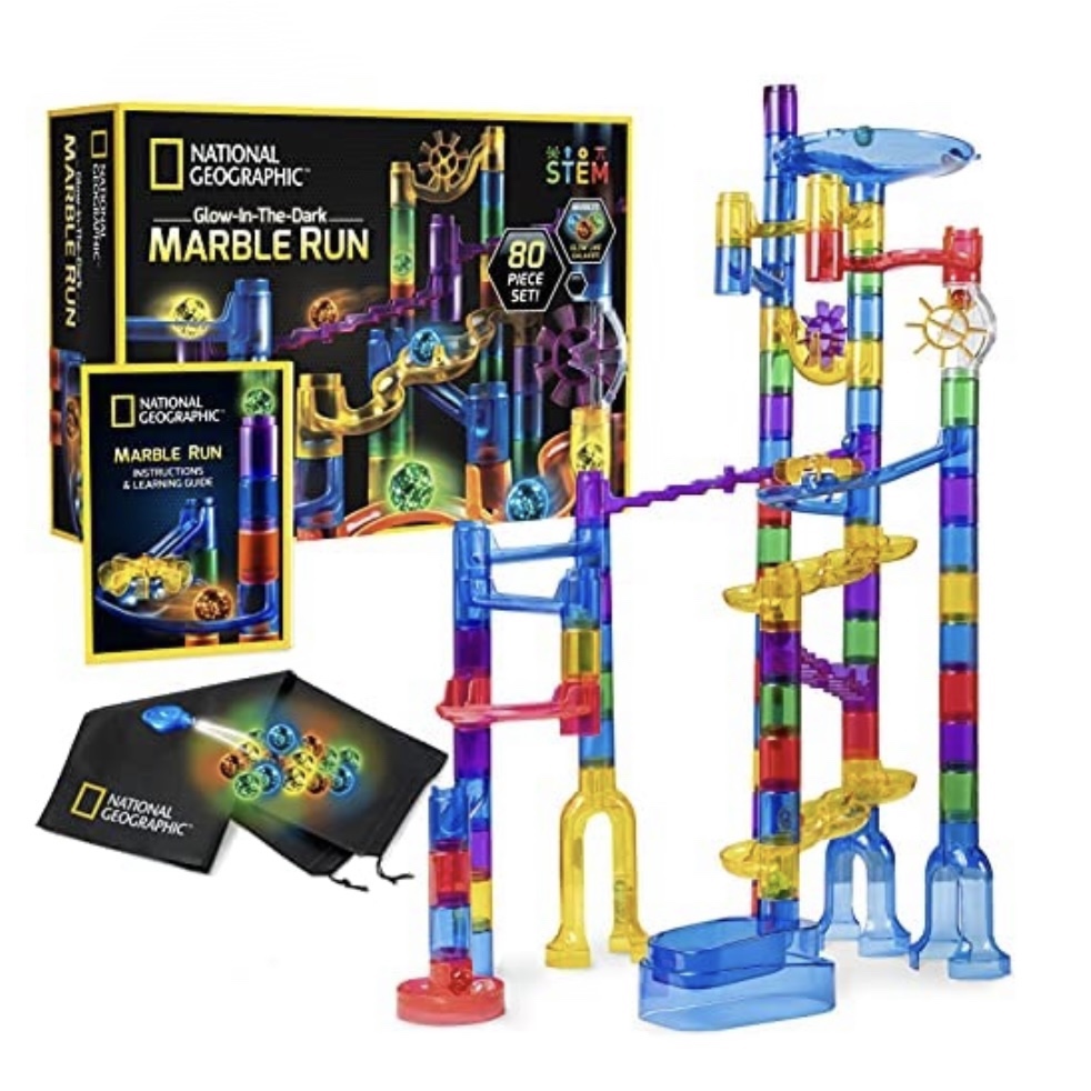 My son picked this one out of one of those Amazon holiday catalogs last year and has loved it. At age 6, more often than not my husband was helping him build the tracks and then playing with the marbles would keep him busy for pretty long periods of time. It’s a toy that tears down and comes with a bag to store everything in so this stays in our hall closet and he pretty consistently seeks it out to play with.